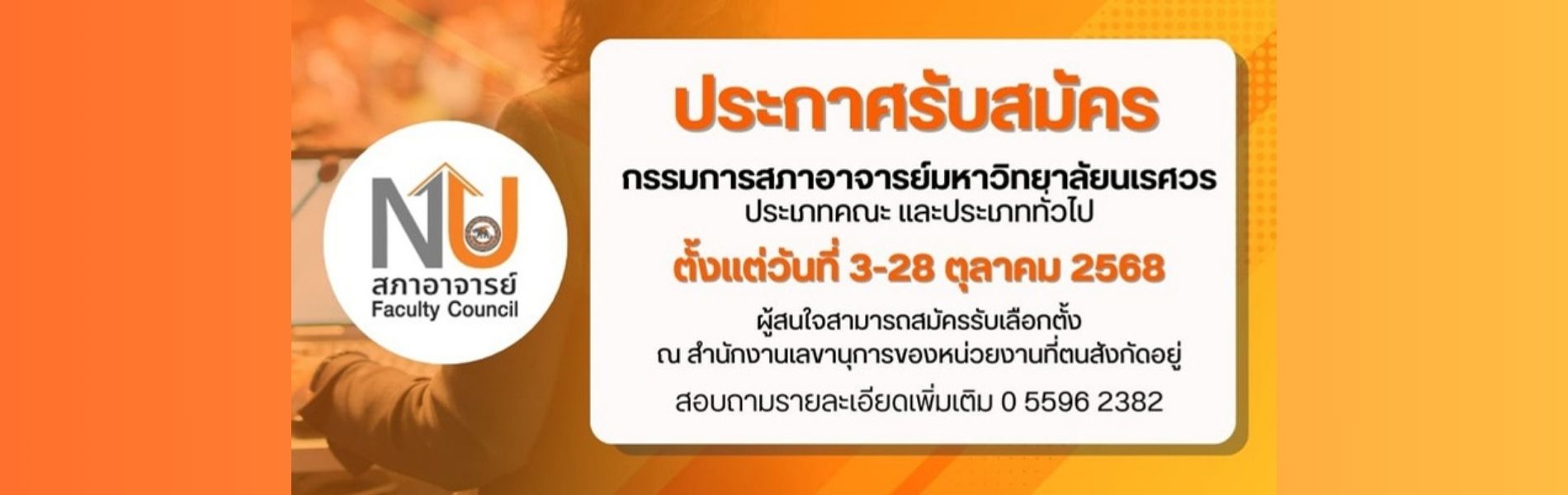 การประชุมคณะอนุกรรมการดำเนินการเลือกตั้งกรรมการสภาอาจารย์ ประเภทคณะ (คณะสถาปัตยกรรมศาสตร์ ศิลปะและการออกแบบ) แทนตำแหน่งที่ว่าง ในวันพฤหัสบดีที่ 29 พฤษภาคม 2568 เวลา 09.00 น. เป็นต้นไป ณ ห้องนเรศวร 201 อาคารสำนักงานอธิการบดี ชั้น 2 มหาวิทยาลัยนเรศวร