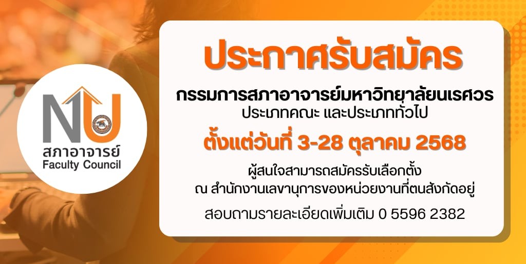 ประชาสัมพันธ์การเลือกตั้งกรรมการสภาอาจารย์ ประเภทคณะ และประเภททั่วไป ระหว่างวันที่ 3 - 28 ตุลาคม 2568 สนใจสามารถสมัครรับเลือกตั้ง ณ สำนักงานเลขานุการของหน่วยงานที่ตนสังกัดอยู่